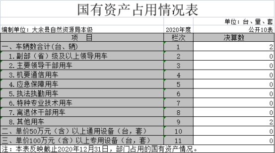 截止2020年12月31日,本部門(單位)國有資產(chǎn)占用情況見公開10表《國有資產(chǎn)占用情況表》。其中車輛中的其他用車主要是執(zhí)法用車。