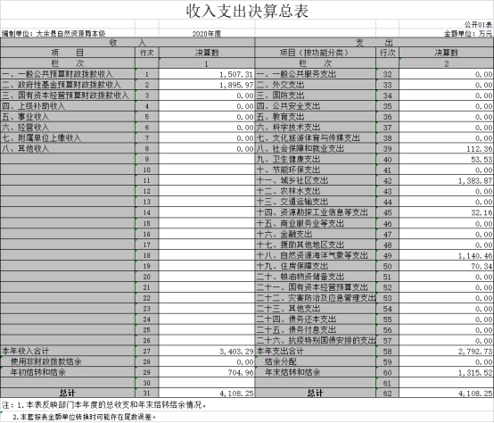 納入本套部門決算匯編范圍的單位共1個,包括:大余縣自然資源局(本級)。