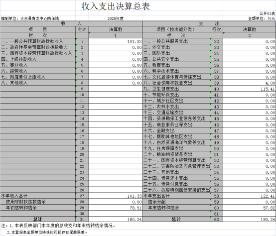 本單位2020年度收入總計180.24萬元,其中年初結(jié)轉(zhuǎn)和結(jié)余78.91萬元,較2019年增加1.63萬元,增加2.11%;本年收入合計101.33萬元,較2019年減少366.6萬元,下降78.34 %,主要原因是:財政撥款及事業(yè)收入均比上年度減少。