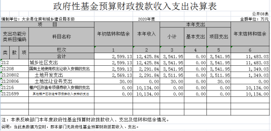 (八)上年結轉(結余):填列2019年全部結轉和結余的資金數,包括當年結轉結余資金和歷年滾存結存結余資金。