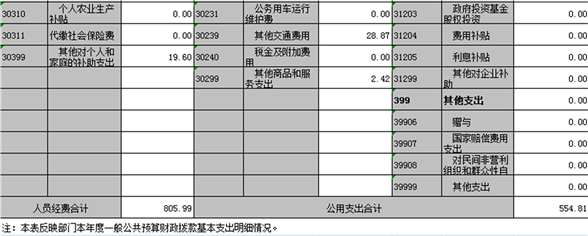本年支出的具體構(gòu)成為:基本支出1367.88萬元,占96%;項(xiàng)目支出56.88萬元,占4%。