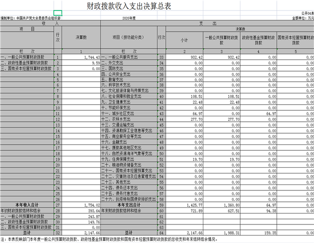 (縣委組織部) 2020年度大余縣部門決算公開情況統(tǒng)計(jì)表