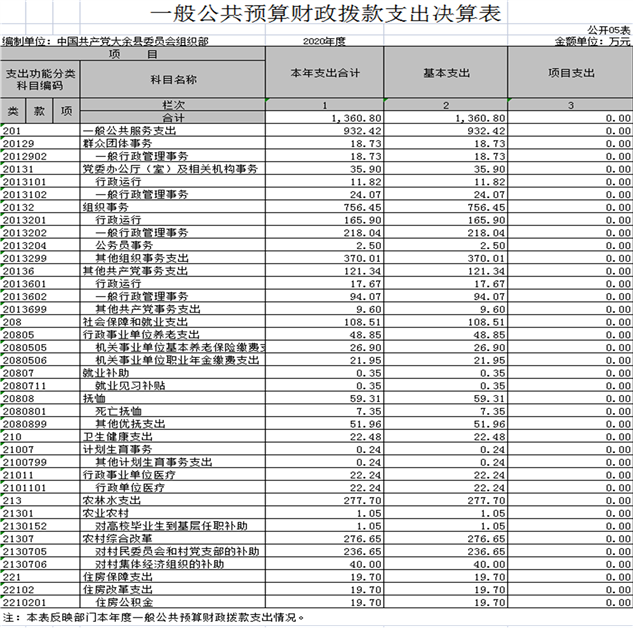 本單位2020年度支出總計1425.77萬元,其中本年支出合計1425.77萬元,較2019年增加854.83萬元,增長59.96%,主要原因是:2020年4月縣委老干部局與機關工委合并在縣委組織部進行核算。年末結轉和結余721.89萬元,較2019年增加529.61萬元,增長73.36%,主要原因是:2020年4月縣委老干部局與機關工委合并在縣委組織部進行核算。