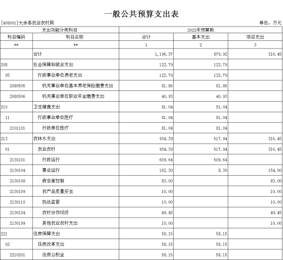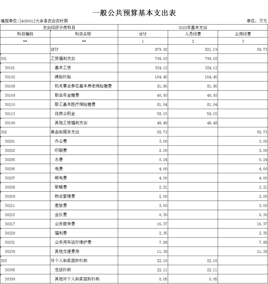 第二部分 大余縣農業農村局本級2022年單位預算表