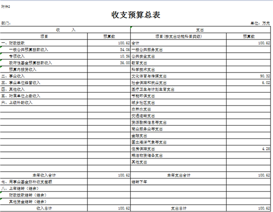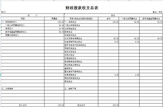 按支出功能科目劃分:文化體育與傳媒支出支出100.62萬元。