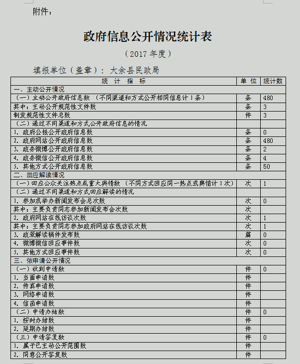 附件:大余縣民政局2017年政府信息公開情況統計表
