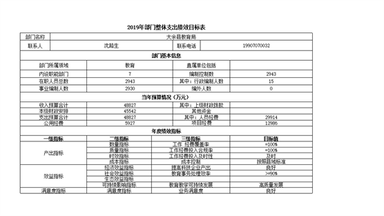 2019年實行績效目標管理的項目1個。本部門當年預算收入48827萬元,其中本級財政安排收入45542萬元,目標各項指標均達良好以上。