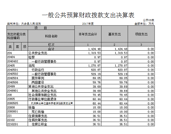 (一)公共安全支出:反映法院(包括各專門法院)的支出。