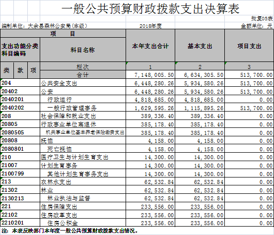 (一)公共安全支出:反映政府維護社會公共安全方面的支出。