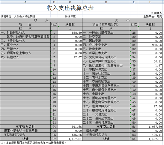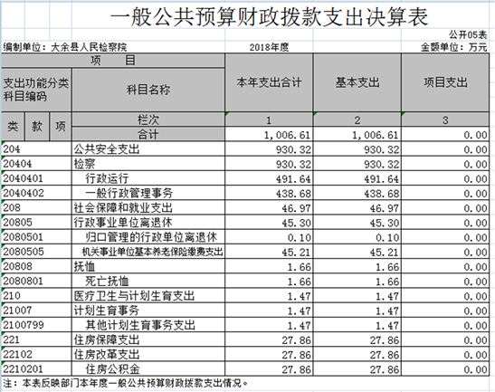 納入本套部門決算匯編范圍的單位共1個,即大余縣人民檢察院。