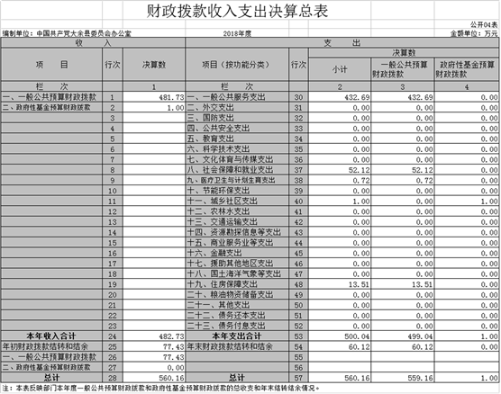 四、財政撥款收入支出決算總表