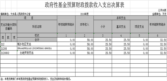 (四)城鄉社區支出年初預算數為58萬元,決算數為25.5萬元,完成年初預算的45 %,主要原因是:政府網站升級余款在2019年支付。