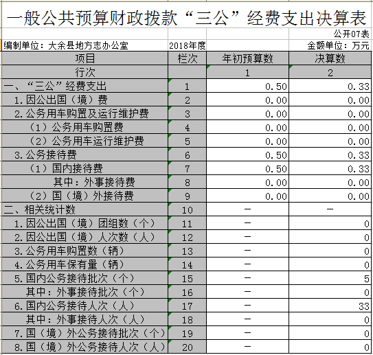 (五)“三公經費”:納入財政預決算管理的“三公”經費,是指部門用財政撥款安排的因公出國(境)費、公務用車購置及運行費和公務接待費。其中,因公出國(境)費反映單位公務出國(境)的國際旅費、國外城市間交通費、住宿費、伙食費、培訓費、公雜費等支出;公務用車購置及運行費反映單位公務用車車輛購置支出(含車輛購置稅)及租用費、燃料費、維修費、過路過橋費、保險費、安全獎勵費用等支出;公務接待費反映單位按規定開支的各類公務接待支出。