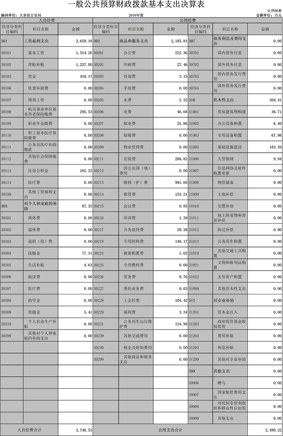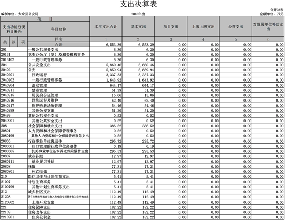 (二)公共安全支出年初預算數為5538.37萬元,決算數為 5642.9萬元,完成年初預算的101.89%。