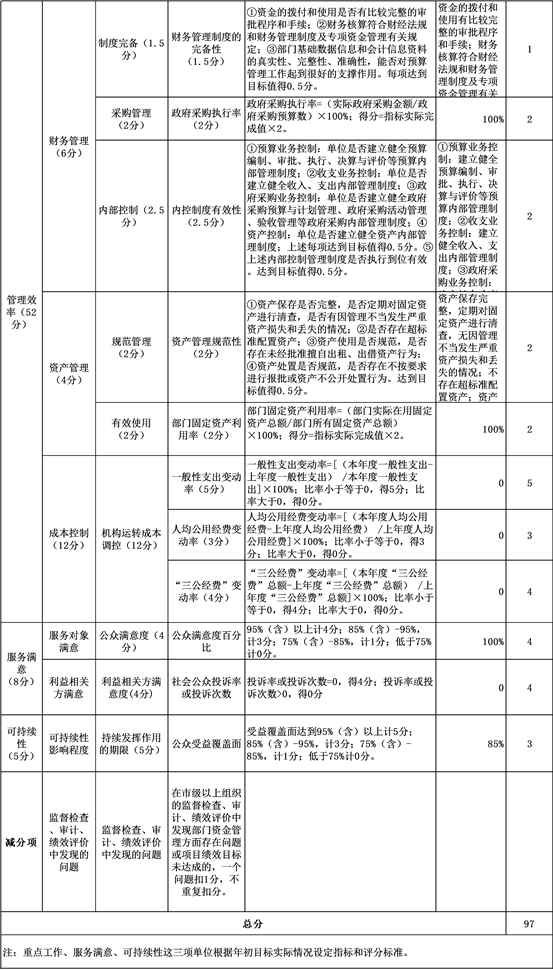 部門整體支出績效評價指標體系及評分標準-2018年 (大余縣檔案局)
