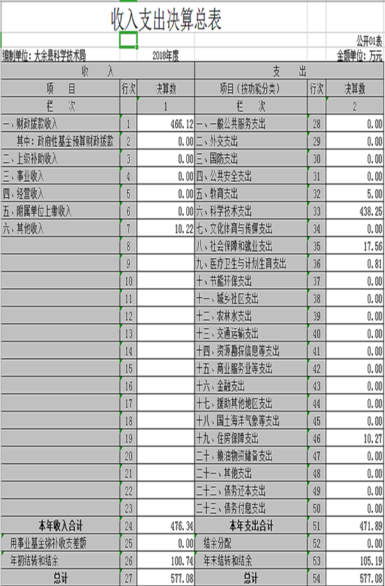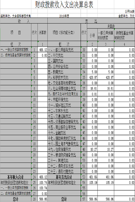 納入本套部門決算匯編范圍的單位共 4 個,包括:大余縣科學技術局機關、大余縣食品研究所、大余縣知識產權局、大余縣科學技術情報站。