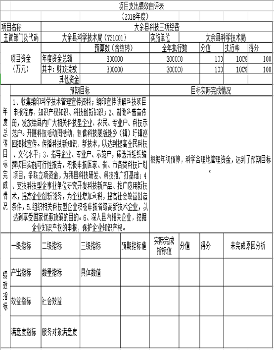 根據預算績效管理要求,我部門組織對2018年度一般公共預算項目支出全面開展績效自評,其中,一級項目1個,二級項目1個,共涉及資金 30 萬元,占一般公共預算項目支出總額的 100 %。組織對2018年度 0個政府性基金預算項目支出開展績效自評,共涉及資金 0 萬元,占政府性基金預算項目支出總額的 0 %。