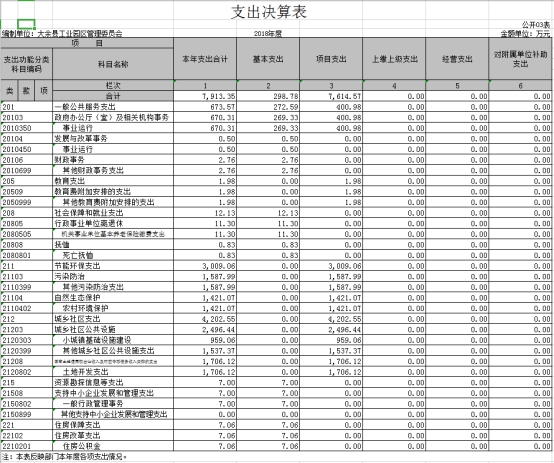 (一)一般公共服務支出年初預算數為272.09萬元,決算數為272.09萬元,完成年初預算的100%;教育支出年初預算數為1.98萬元,決算數為1.98萬元,完成年初預算的100%;社會保障和就業支出年初預算數為12.13萬元,決算數為12.13萬元,完成年初預算的100%;節能環保支出年預算數為:1421.07決算數為1421.07萬元,完成年初預算的100%;城鄉社區支出年初預算數為4184.51萬元,決算數為4184.51萬元,完成年初預算的100%;資源勘探信息等支出年初預算數為7萬元,決算數為7萬元,完成年初預算的100%;住房保障支出年初預算數為7.06萬元,決算數為7.06萬元,完成年初預算的100%;