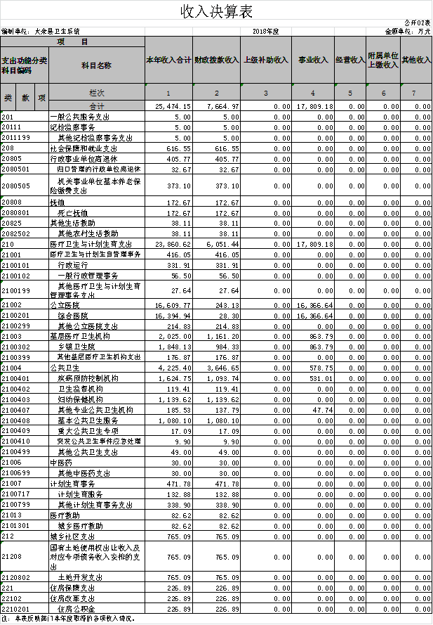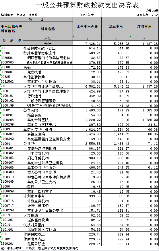 大余縣衛生部門2018年度部門決算
