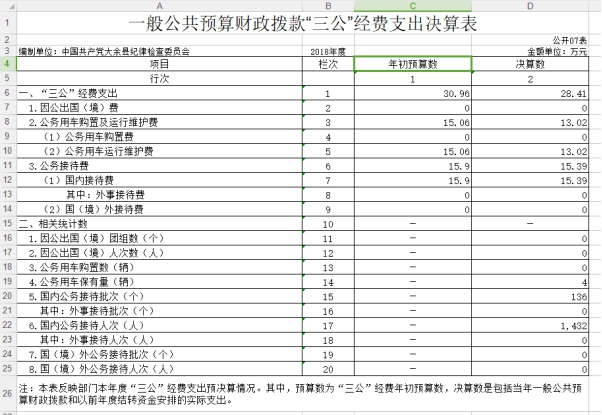 本部門2018年度一般公共預算財政撥款“三公”經費支出年初預算數為 30.96萬元,決算數為28.41萬元,完成預算的 91.76%;決算數較2017年減少0.11萬元,下降0.38 %,其中: