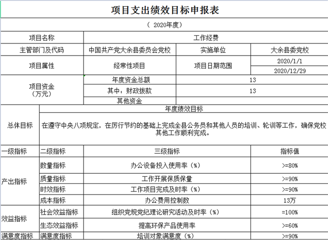 三、2020年工作經(jīng)費(fèi)項(xiàng)目支出績效目標(biāo)申報(bào)表