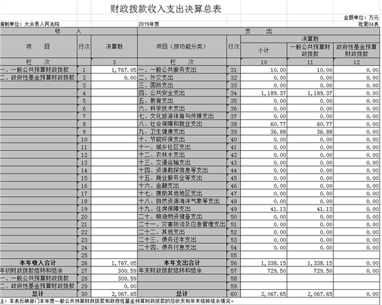 大余縣人民法院部門2019年度部門決算