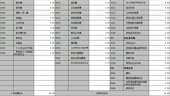 本部門2019年度支出總計511.97萬元,其中本年支出合計 381.14萬元,較2018年減少32.22萬元,下降7.79 %,主要原因是:正常人員變動;年末結轉和結余130.82萬元,較2018年增加28.11 萬元,增長27.37%,主要原因是:正常人員變動。