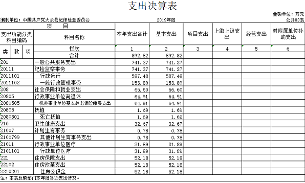 (一)一般公共服務(wù)支出(類(lèi))紀(jì)檢監(jiān)察事務(wù)(款)行政運(yùn)行(項(xiàng)):指機(jī)關(guān)用于保障機(jī)構(gòu)正常運(yùn)行、開(kāi)展日常工作的基本支出。