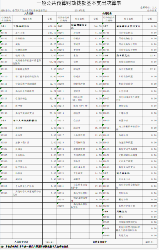 六、一般公共預(yù)算財(cái)政撥款基本支出決算表