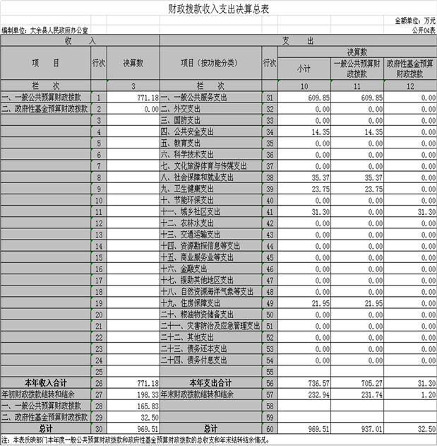 四、財政撥款收入支出決算總表