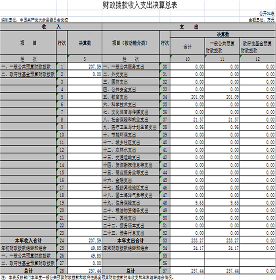 四、財政撥款收入支出決算總表