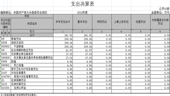 本部門2018年度支出總計265.69萬元,其中本年支出合計241.52萬元,較2017年增加23.23萬元,增加10.6%,主要原因是:2018年是學(xué)習(xí)習(xí)近平新時代中國特色社會主義思想和黨的十九大精神的開局之年,各類培訓(xùn)班和主體班比往年有所增加;年末結(jié)轉(zhuǎn)和結(jié)余24.17萬元,較2017年減少25.68萬元,減少51.5%,主要原因是:2017年底有鎮(zhèn)村干部輪訓(xùn)班跨年,2018年開支,所以2017年年末結(jié)轉(zhuǎn)和結(jié)余比2018年多。