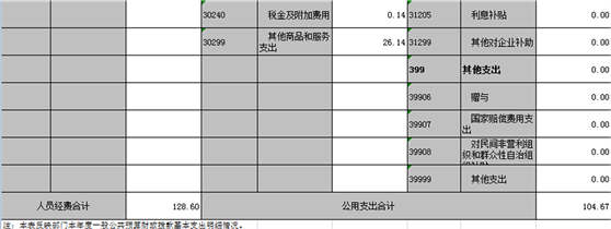 (五)“三公經(jīng)費”:納入財政預(yù)決算管理的“三公”經(jīng)費,是指部門用財政撥款安排的因公出國(境)費、公務(wù)用車購置及運行費和公務(wù)接待費。其中,因公出國(境)費反映單位公務(wù)出國(境)的國際旅費、國外城市間交通費、住宿費、伙食費、培訓(xùn)費、公雜費等支出;公務(wù)用車購置及運行費反映單位公務(wù)用車車輛購置支出(含車輛購置稅)及租用費、燃料費、維修費、過路過橋費、保險費、安全獎勵費用等支出;公務(wù)接待費反映單位按規(guī)定開支的各類公務(wù)接待(含外賓接待)支出。