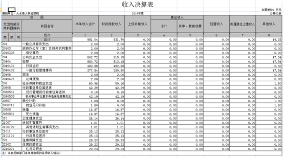 我院2019年度收入總計1401.16萬元,其中年初結轉和結余420.11萬元,較2018年減少86.65萬元,下降5.8 %;本年收入合計981.04萬元,較2018年增加69.48萬元,增長7.6%,主要原因是:政法轉移支付資金撥付增加。