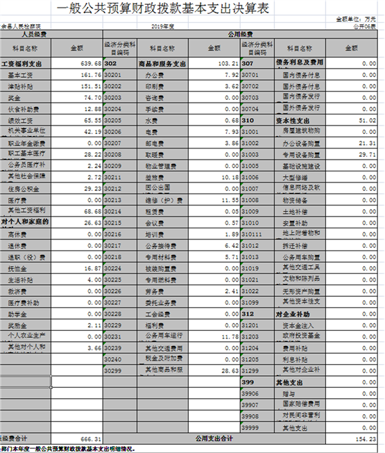 我院2019年度一般公共預算財政撥款基本支出820.54萬元,其中: