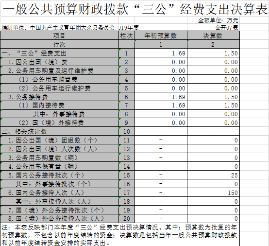 (四)“三公經費”:納入財政預決算管理的“三公”經費,是指部門用財政撥款安排的因公出國(境)費、公務用車購置及運行費和公務接待費。其中,因公出國(境)費反映單位公務出國(境)的國際旅費、國外城市間交通費、住宿費、伙食費、培訓費、公雜費等支出;公務用車購置及運行費反映單位公務用車車輛購置支出(含車輛購置稅)及租用費、燃料費、維修費、過路過橋費、保險費、安全獎勵費用等支出;公務接待費反映單位按規定開支的各類公務接待(含外賓接待)支出。