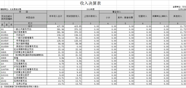 四、其他收入: 指除上述“一般公共預(yù)算撥款收入”、“事業(yè)收入”、“事業(yè)單位經(jīng)營收入”等以外的收入。主要為國家統(tǒng)計局直屬各級調(diào)查隊的地方財政撥款收入(代管的地方編制人員的費用) 以及地方政府委托調(diào)查任務(wù)費用。