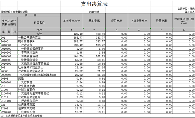 納入本套部門決算匯編范圍的單位共1個,包括:大余縣統(tǒng)計局本級、農(nóng)村經(jīng)濟調(diào)查隊、普查中心、統(tǒng)計執(zhí)法大隊。