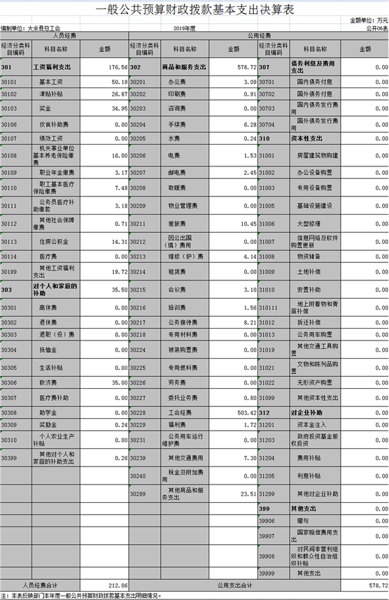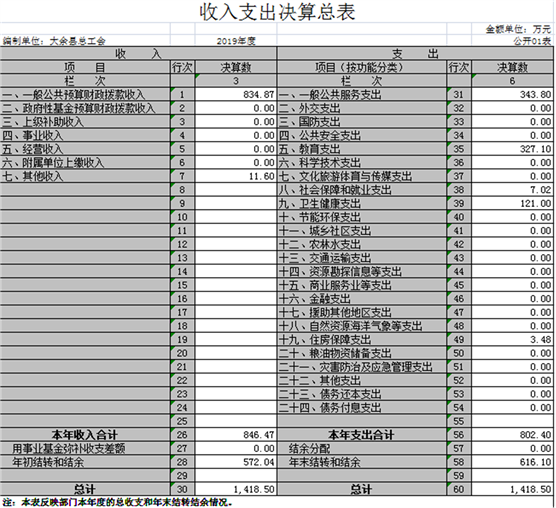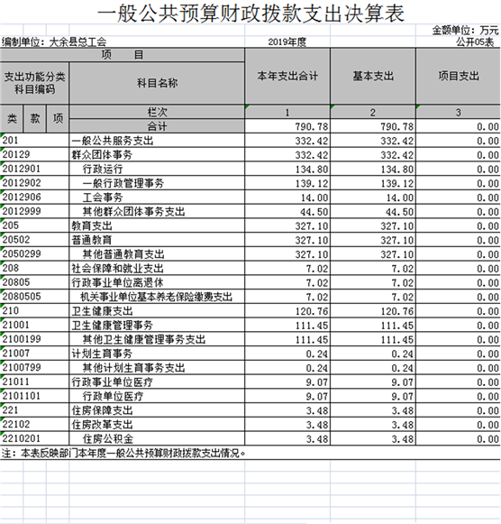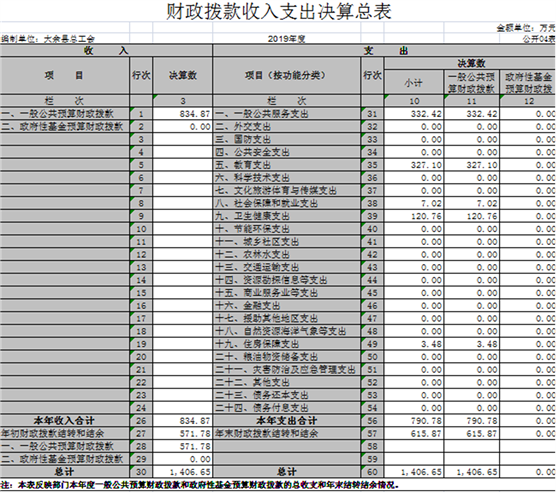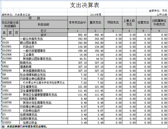 大余縣總工會2019年度部門決算