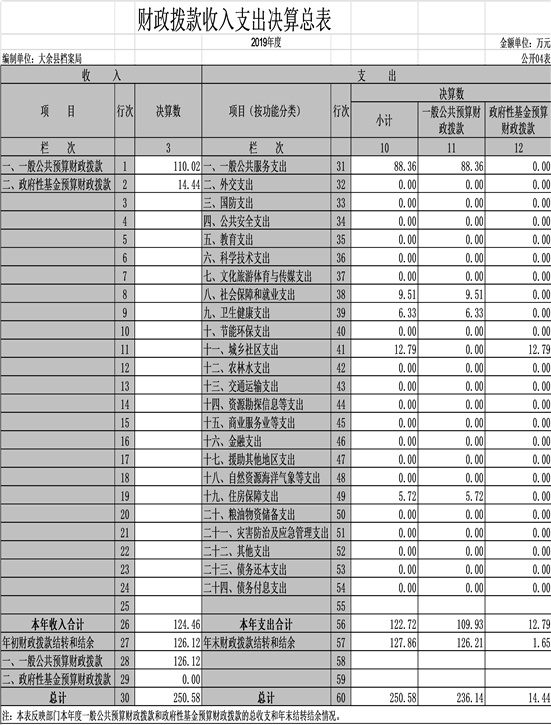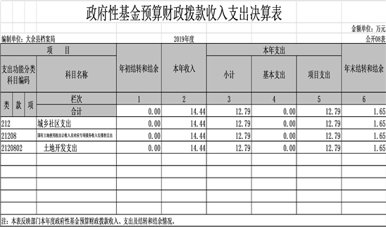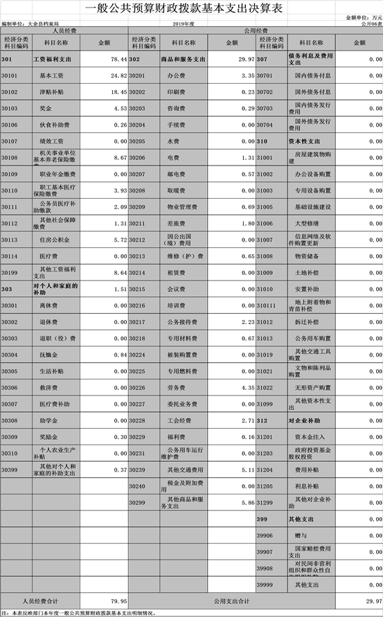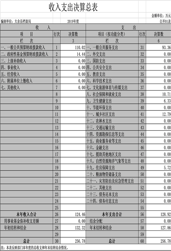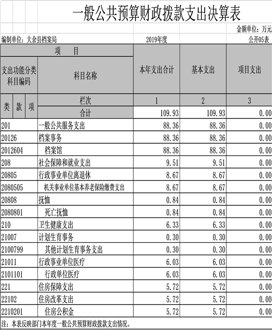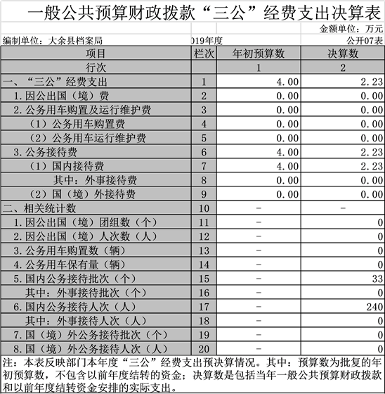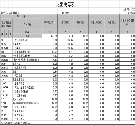 大余縣檔案局2019年度部門決算