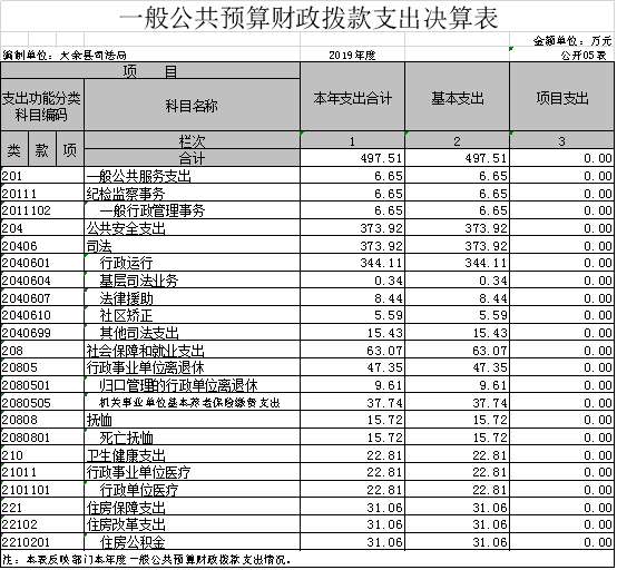 本部門2019年度支出總計865.31萬元,其中本年支出合計527.44萬元,較2018年611.06萬元減少83.62萬元,下降13.68%,主要原因是:公共安全支出減少;年末結轉和結余337.87萬元,較2018年37.93萬元增加299.94萬元,增長790.77%,主要原因是:財政撥款收入增加,支出減少,結余增加。