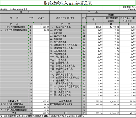 納入本套部門決算匯編范圍的單位共 1 個,包括:大余縣機關(guān)事務管理局。