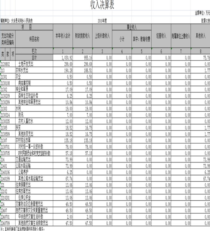 本部門2019年度收入總計1531.98萬元,其中年初結轉和結余501.06萬元,較2018年減少371.71萬元,下降19.52 %;本年收入合計1030.92萬元,較2018年減少490.66萬元,下降32.25%,主要原因是:大部分項目已完工,征地拆遷補償已基本到位。