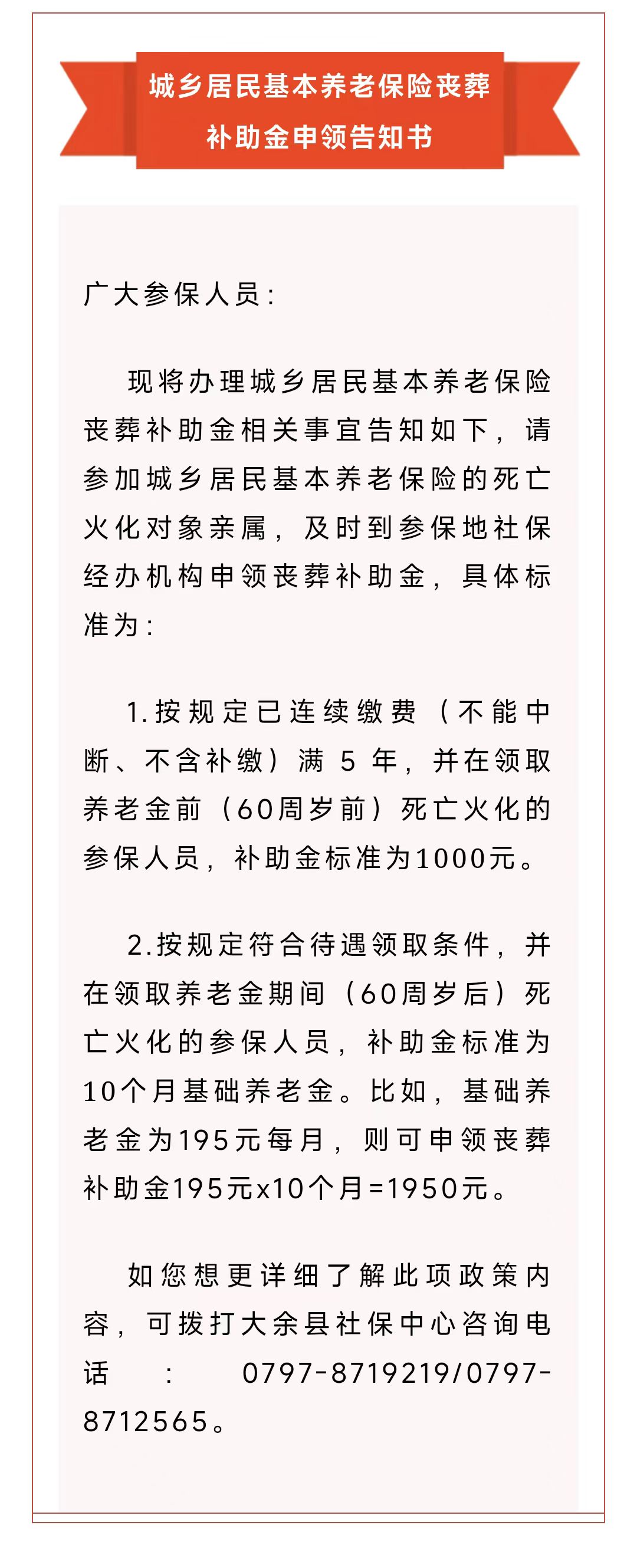 城鄉居民基本養老保險喪葬補助金申領告知書