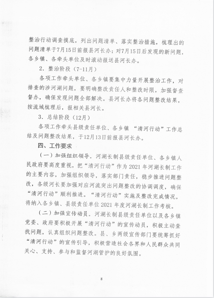 大余縣河長辦公室關(guān)于印發(fā)《大余縣2021年“清河行動(dòng)”工作方案》的通知