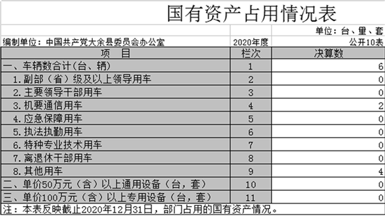 截止2020年12月31日,本部門(單位)國有資產占用情況見公開10表《國有資產占用情況表》。其中車輛中的其他用車主要是無法使用和待處置車輛。