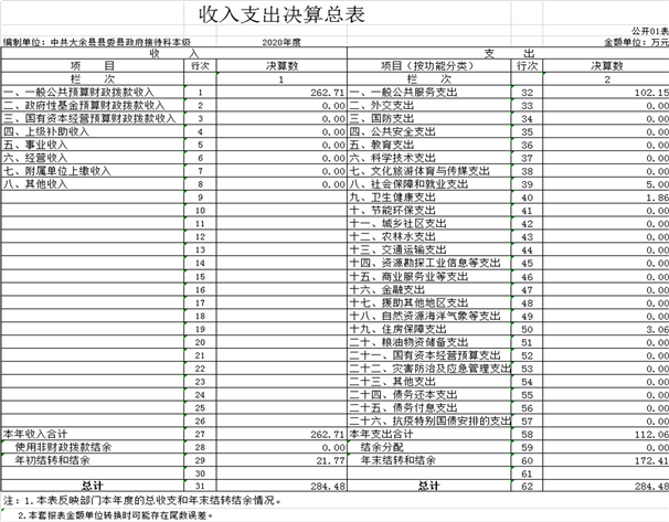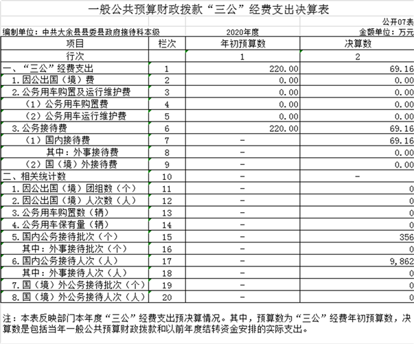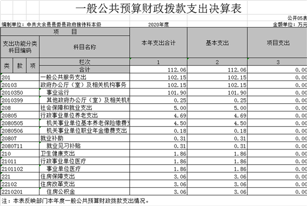 納入本套部門決算匯編范圍的單位共 1 個。包括中共大余縣委縣政府接待科。