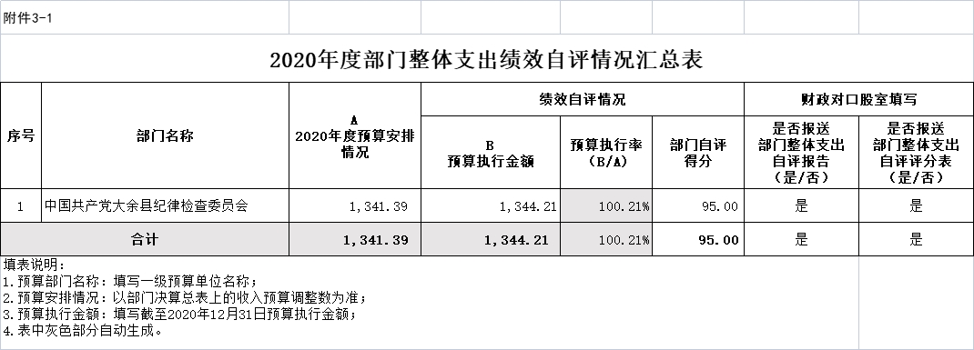 第二部分 中國共產黨大余縣紀律檢查委員會本級2020年度單位決算表