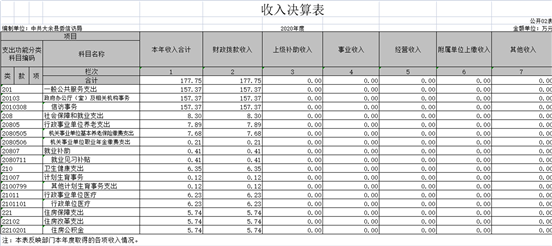 本部門2020年度收入總計202.69萬元,其中年初結轉和結余24.94萬元,較2019年減少20.35萬元,下降9.1%;本年收入合計177.75萬元,較2019年減少16.66萬元,下降8.6%,主要原因是:他性收入比去年減少16.66萬元。