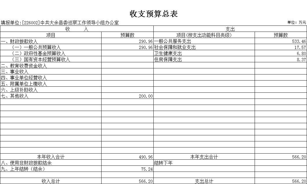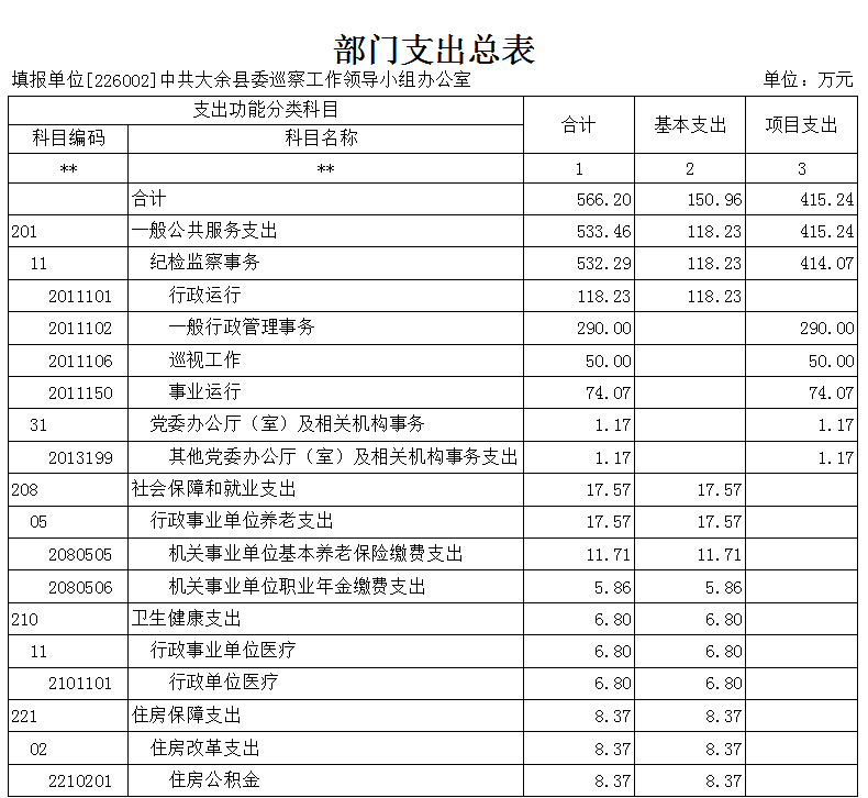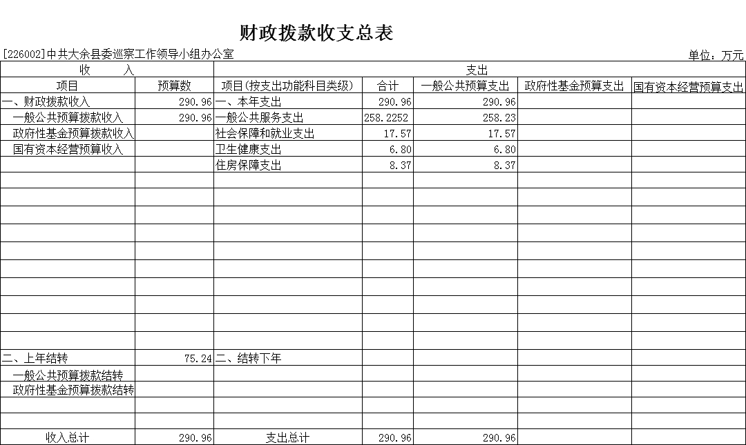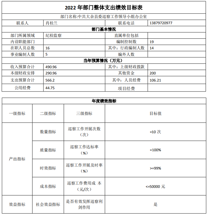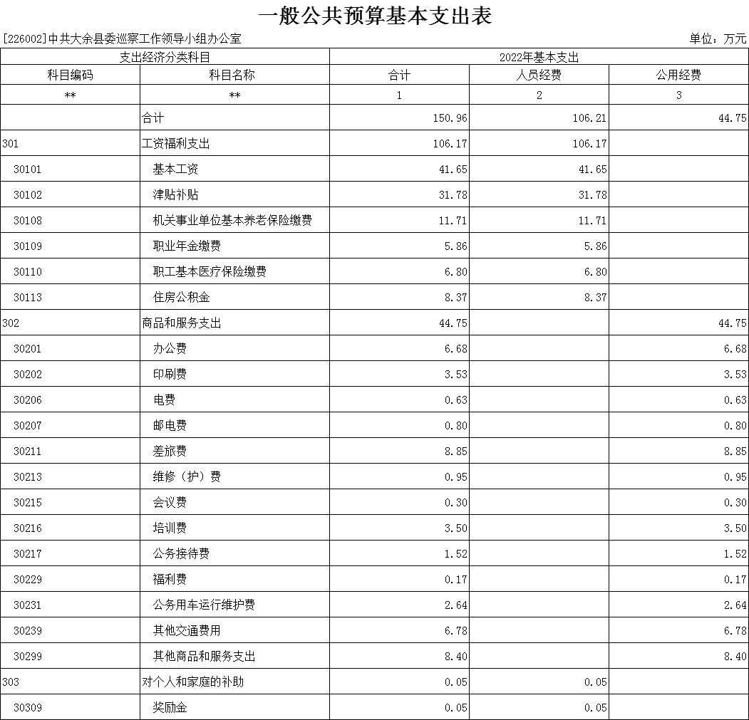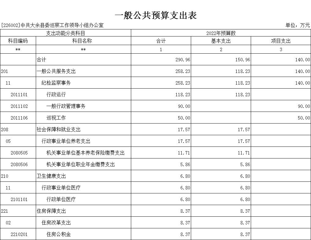 第二部分 中共大余縣委巡察工作領(lǐng)導(dǎo)小組辦公室2022年部門預(yù)算表